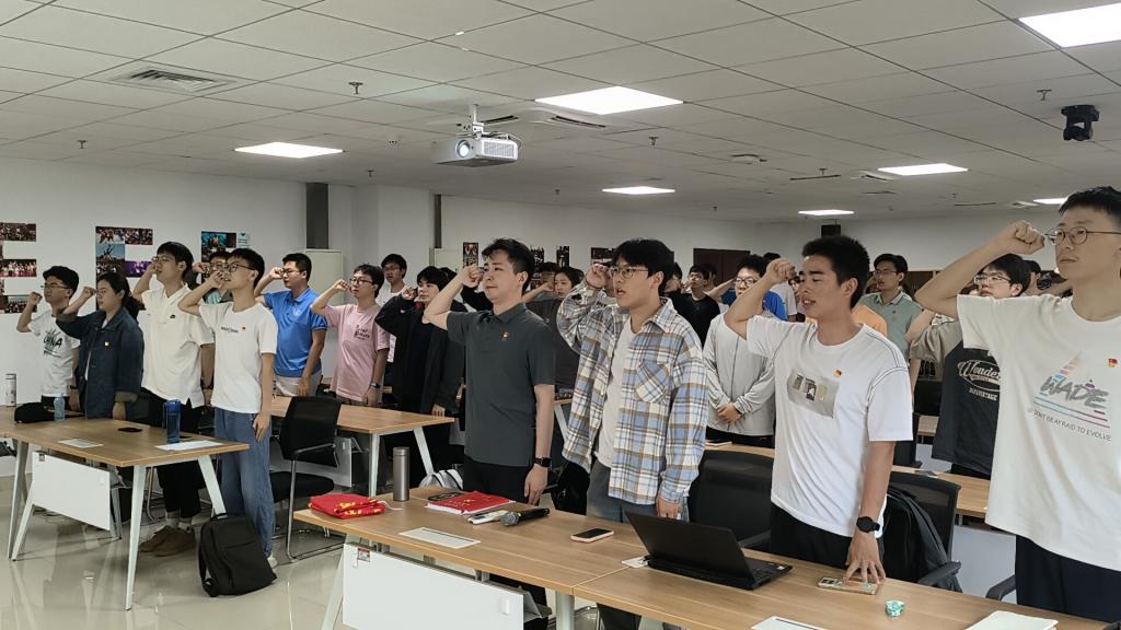 电气本硕博班本科生党支部书记张炯带领全体党员进行了庄重的宣誓仪式。大家通过重温入党誓词,表达了为党的事业奋斗终身的决心和信念。