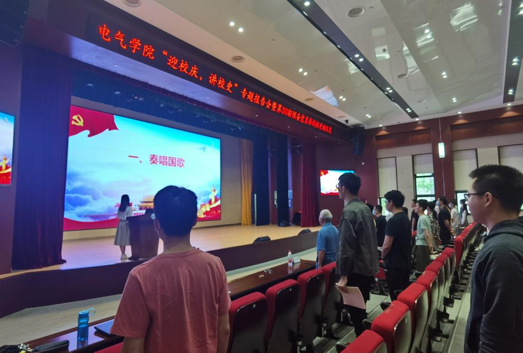 开班仪式的主讲教师是张国德老师,张国德老师是华中科技大学退休教师、学校关工委“迎校庆,讲校史”专题报告团的授课教师,也是我们电气学院原党委书记。张老师以“与时俱进,不断创新——电力系统动态模拟实验室发展历程给我们的启示”为主题,结合张老师本人在华中大数十年生活、工作的所见所闻,向在场预备党员同志们介绍了动模实验室的发展历程和主要科技成果,并勉励大家传承老一辈电气人团结协作、艰苦奋斗的精神,做到与时俱进、不断创新。
