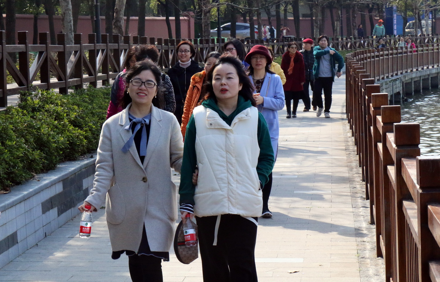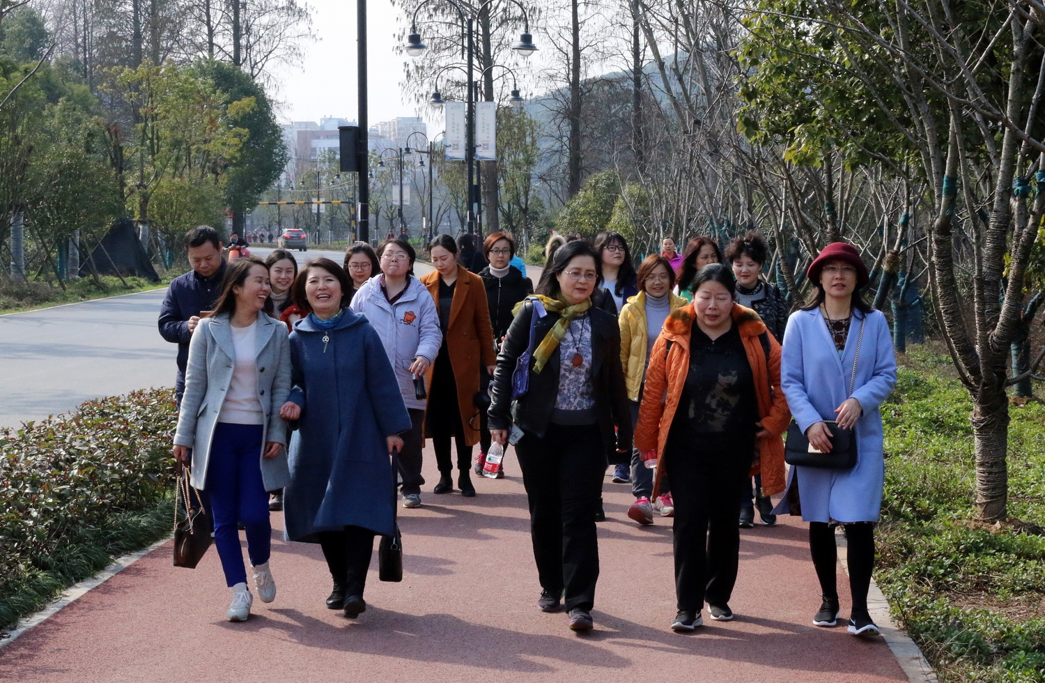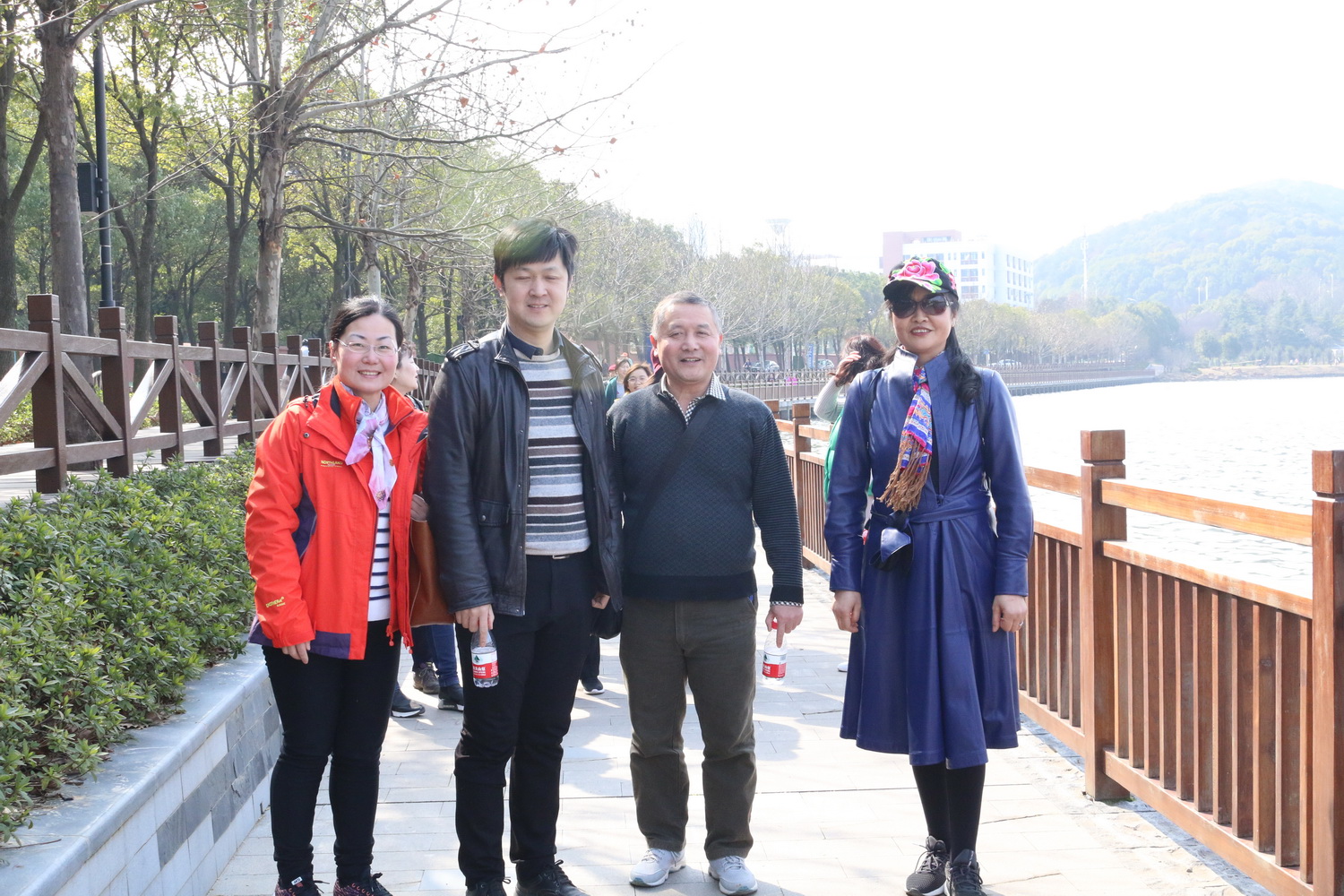下午2点30分,女同胞们在华科附中北门的东湖绿道上集合完毕,首先进行集体合影留念。平日大家工作岗位上兢兢业业,现在欢聚一起交流工作与生活中的趣事,每个人脸上都洋溢着兴奋快乐的笑容。拍完合影后大家便正式开始了东湖漫步。三月的东湖刚刚熬过多日的寂寞冷清,温暖的阳光均匀的播撒在碧绿的草地上,湖中的春水在缓缓流淌,温柔地拍打着岸边,绿道上的花草树木在春风的吹拂下随风飘扬,仿佛在欢迎着这些常年辛辛苦苦工作在自己工作岗位上的女园丁们。大家踏着春光,迎着春风,悠闲地散步着,一路上一边欣赏着沿途迷人的风景,一边和同事们合影留念,记录下这难忘的时刻,留下的笑容展示着当代知识女性独有的魅力和自信。