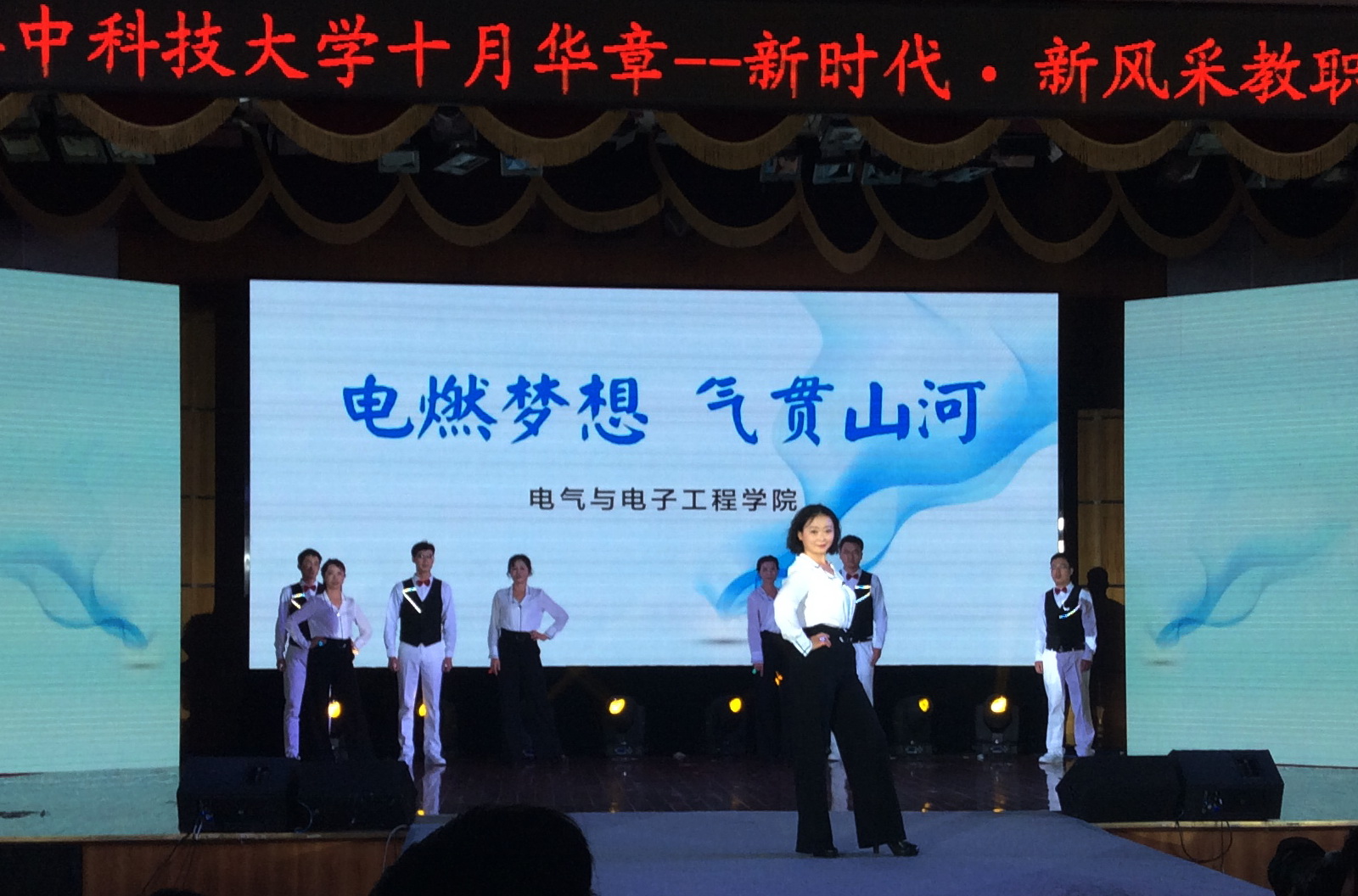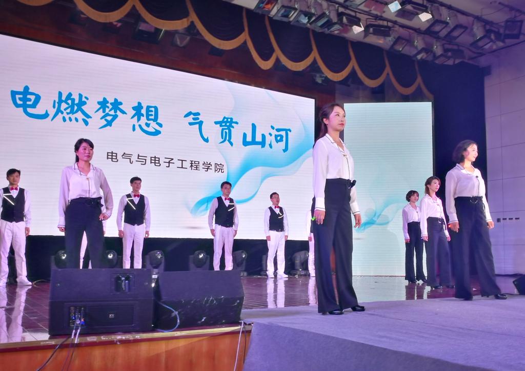 电气学院演出队第4个出场表演,演出的主题是“电燃梦想,气贯山河”。他们以情景演绎、舞台走秀的形式,展示出我院师生“不忘初心,牢记使命,在党旗领航下,积极投身建设双一流建设、争创超人业绩”的精神风貌,直观地塑造出学院师生将“立德树人”和“创新科技”的伟大事业为己任,“俯瞰世界,团结一心,追求卓越,奋力高飞”的娇美形象,展示了“电气骄子,照亮中国”的雄心壮志。