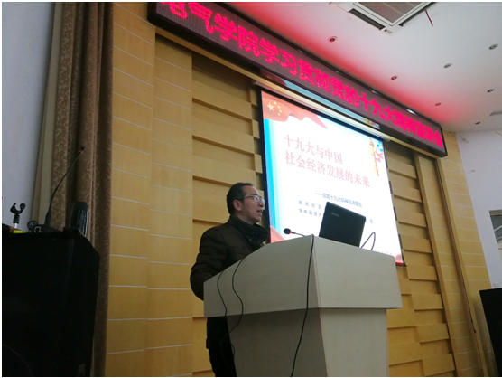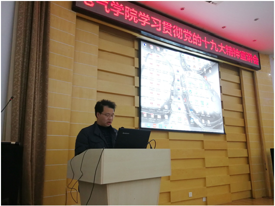 为深入学习宣传贯彻党的十九大精神,电气学院于12月14日下午在西九楼502报告厅召开全院教职工大会,特邀湖北省委宣讲团成员、经济学院院长张建华教授进行党的十九大精神宣讲,主题为“党的十九大与中国经济发展的未来”。宣讲会由电气学院党委书记陈晋主持。