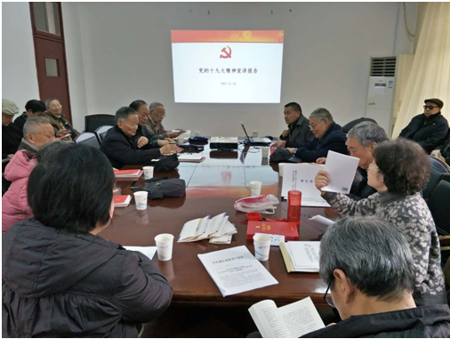 暖暖的冬日阳光里,33位在校的退休党员齐聚一堂,认真听取了电气学院党委办公室主任朱瑞东老师作的“党的十九大精神宣讲报告”。在这之前,广大党员已经观看了党的十九大直播,亲耳聆听了习近平总书记的报告,党支部已采取多种形式组织党员学习讨论,如在党支部党员微信群里展开了热烈讨论。本次宣讲会,是进一步将会议精神武装大脑、融入心里,在“学懂、弄通、做实”上下功夫。朱老师的报告宣讲感情充沛,党员听讲聚精会神。习近平总书记提出的“新时代中国共产党人的初心和使命,就是为中国人民谋幸福,为中华民族谋复兴”振奋人心。党的十九大将习近平新时代中国特色社会主义思想确立为党的指导思想,这是党的十九大报告的灵魂,明确了中国特色社会主义事业的总体布局是“五位一体”,战略布局是“四个全面”,强调坚定道路自信、理论自信、制度自信和文化自信。一个小时的宣讲报告使广大党员加深了对党的十九大精神的理解,对祖国的未来充满了信心。