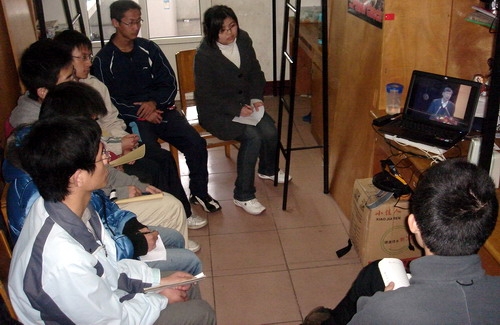 3月29日下午,李培根校长主讲的学习实践科学发展观第三场报告会在管理学院报告厅举行。电气学院组织各学生党员以支部为单位在宿舍观看报告会直播实况,并在报告会结束后看展学习讨论和心得交流。07级辅导员柴继勇也走到学生宿舍一同观看。