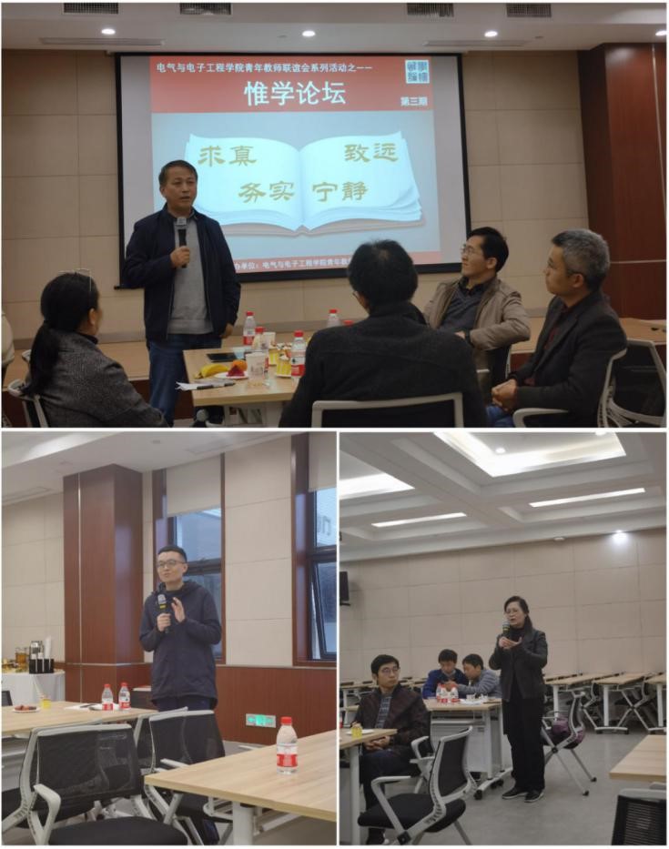 为了增进教师间的沟通交流,帮助青年教师进一步的教学成长,2021331日下午两点钟,由华中科技大学电气与电子工程学院青年教师联谊会主办的惟学论坛系列讲座第三期于电气大楼B203顺利举行,主题为“青年教师的教学进阶之路”。本次活动邀请了2020年国家首批一流线下课程(金课)团队—《电磁场与波》教学天团作客,学院主管教学工作的李红斌副院长与杨勇教授作为特邀嘉宾,为广大青年教授们亲身传授教学经验,解读教学工作的相关政策,深入研讨如何做好教学工作以及为青年教师解答在教学进阶之路上遇到的困惑。