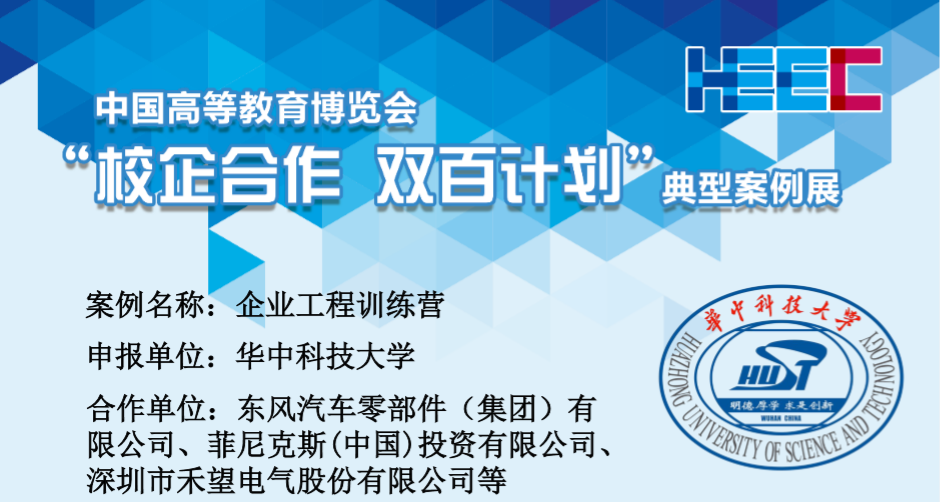 6月2日,中国高等教育博览会公示了2019年“校企合作-双百计划”典型案例”名单,我校电气学院《企业工程训练营》入选,是我校唯一入选的项目 。