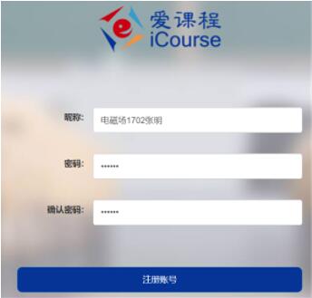 点击“下一步”之后,进入“注册账号”页面,昵称请采用实名制“专业班级姓名”的格式,方便老师跟踪同学们的学习状况,以及后期从网站导出同学们的学习数据。点击"注册账号",则注册成功。