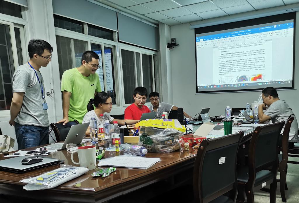 2020年6月29日深夜,聚变所丁永华教授、陈忠勇教授、王璐教授、郑玮、王能超、严伟等老师正在分析实验结果撰写报告。