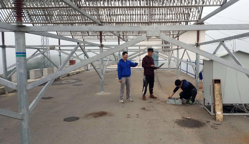 聚变所王楚良老师带领研究生艾鑫坤、薛凤鸣在六盘山顶调试带电粒子催化人工降雨装置,该装置的国家重点研发计划的一个重要组成部分。