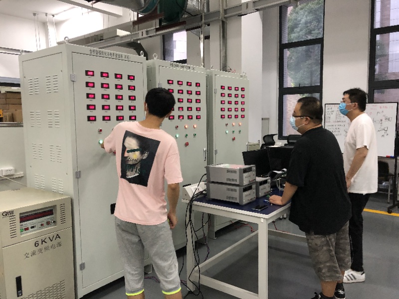 2020年7月6日下午,电机系徐伟教授、刘毅老师带领研究生王启哲、张祎舒、Abdul和张杨生在电气大楼实验室进行直线振荡电机平台测试工作。该样机及平台由徐伟教授团队自行研发,目前正和业内知名企业进行合作,具有广阔的应用前景。