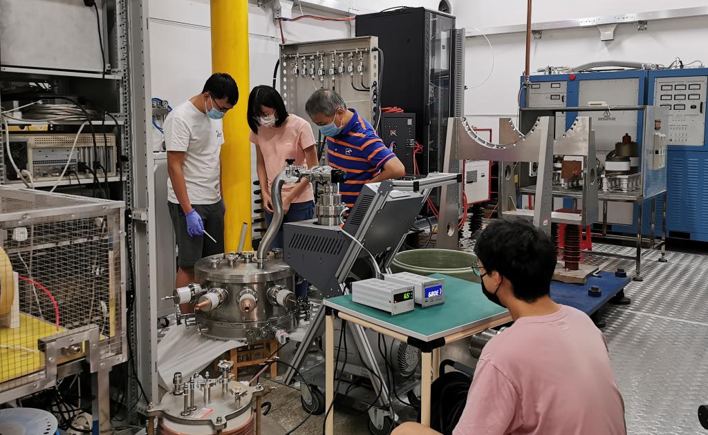 2020年7月1日,陈德智教授带领研究生杨景涵、周磊、刘姝琪在西九楼负离子源实验室装配离子源装置,以科研行动庆祝党的生日。该装置是国家重点研发计划课题“CFETR N-NBI 负离子束流光学优化研究与实验评估”的重要设备,该课题由华中科技大学应用电磁工程研究所承担,目前正值执行中期,科研任务重。