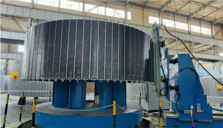 永磁风力发电机的转子直径超过4.3米,高度达1.5米,共有84个永磁磁极,每个磁极由20多个磁钢块拼装而成,传统制造过程中通常需对单个磁钢块充磁使其带磁性后再由人工组装到转子表面,带磁性的磁钢拼装难度大,影响磁极组装质量,且操作危险、生产效率低。而使用整体充磁技术后,磁钢可在不带磁性的状态下轻松组装,再采用整体充磁设备对转子永磁磁极进行整体充磁,该技术成功降低了组装难度,同时改善了装配精度,生产效率相比传统制造提高8倍以上,安全性也得到了大幅提升。与国外同类型产品相比,该充磁设备一次即可实现一整个磁极的充磁,而不是分段多次充磁,避免了分段充磁过程中造成的局部退磁,进一步提高了生产效率。