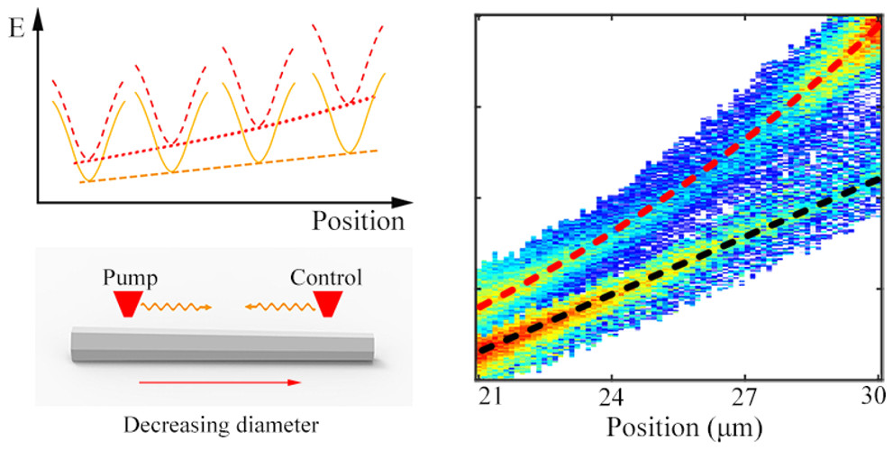 2月25日,《纳米快报》(Nano Letters)在线刊发了中心周伟航副教授团队关于激子极化激元基础物性的研究论文“Polariton–Polariton Interactions Revealed in a One-dimensional Whispering Gallery Microcavity”。该研究利用激子极化激元的半光半物质特性以及它们的玻色-爱因斯坦凝聚效应,精确测量出了激子极化激元体系的相互作用常数(图3),不仅发现激子极化激元之间的库仑相互作用强度比理论预期大了两个数量级,还观察到了激子极化激元这种奇特粒子的弹道输运及机械能守恒现象,对于研究激子极化激元的丰富物理特性,开发它们在新一代光电器件领域的潜在应用具有重要意义。