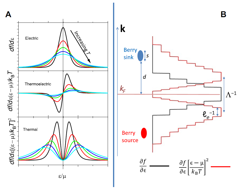 4月24日,《科学·进展》(Science Advances)在线刊发了国家脉冲强磁场科学中心朱增伟教授团队关于反铁磁材料的研究论文“有限温度下反常横向魏德曼弗兰兹定律的破坏”(Finite-temperature violation of the anomalous transverse Wiedemann-Franz law)。该研究通过对非共线反铁磁材料Mn3Ge从室温到亚开尔文温度范围内的反常霍尔效应和反常热霍尔效应进行研究,验证发现反常横向魏德曼弗兰兹定律在低温下也是成立的,但是在高温段并不符合,为此提出了一种新的机制对Mn3Ge中魏德曼弗兰兹定律的偏离进行解释,并通过理论计算揭示了温度与贝里曲率分布之间的竞争关系(图5)。