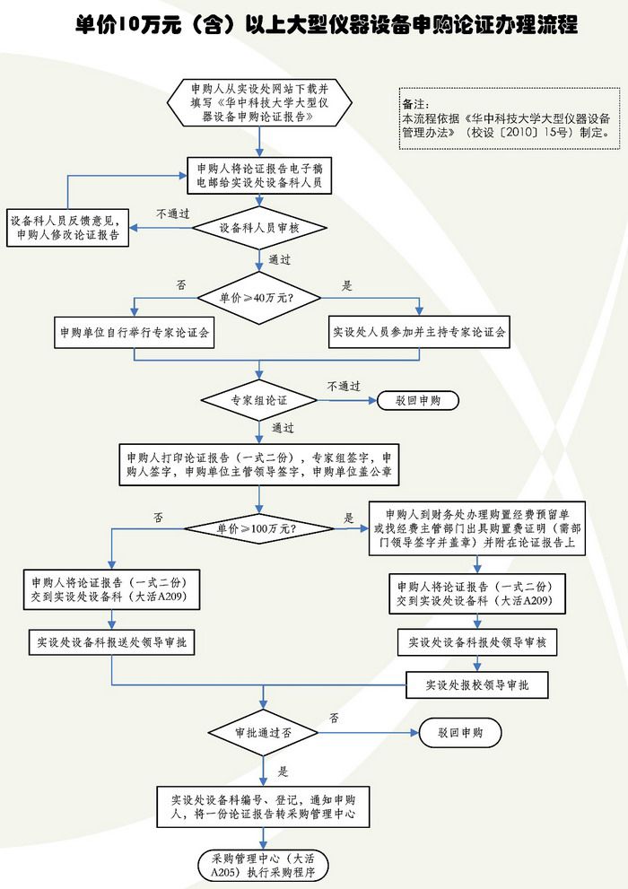 单价10万元以上大型仪器设备申购论证流程