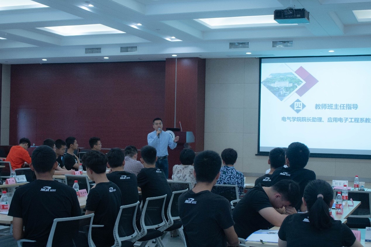 研讨课以“电燃匠心魂,电亮人生路”为主题,电气学院“E路同行”学讲团成员、电工理论与电磁新技术系博士郭自清就“万家灯火点亮神州大地”做主题宣讲,他结合村村通电、能源互联和电磁武器改造,介绍了电气专业在服务民生经济发展、构建清洁高效社会、引领军事战法变革等方面扮演的重要角色。