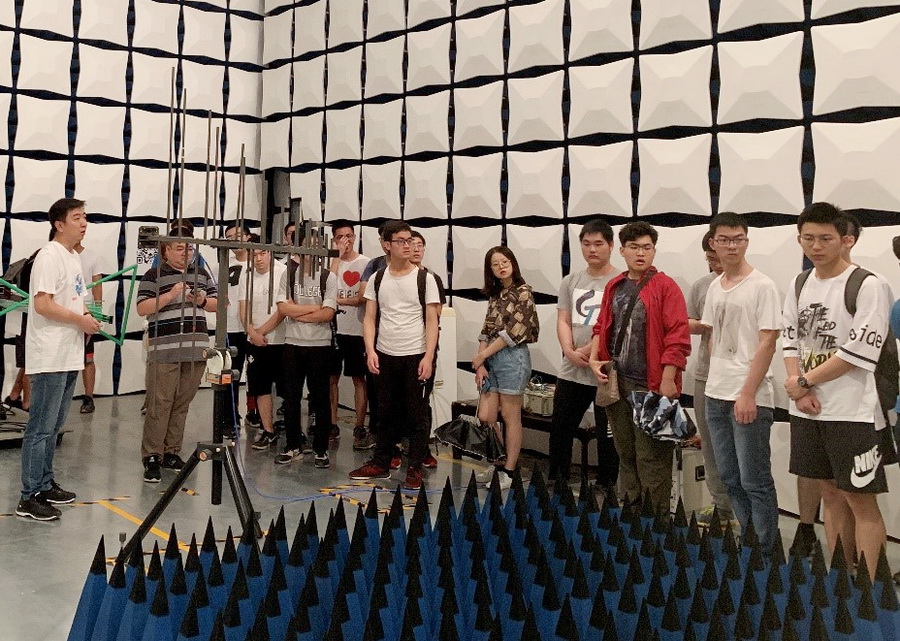 在国家高电压计量站项琼主任、电力工业电气设备质量检验测试中心刘翔主任的带领下,同学们依次参观了国家高电压计量站、国家电网公司特高压交流试验基地、互感器质监站-高压试验大厅和电力工业电气设备质量检验测试中心。在参观中,我们了解到,国家高电压计量站是电力行业唯一一家获得国家质量监督检验检疫总局授权并且唯一保存电磁领域国家计量基准的国家法定机构;国家电网公司特高压交流试验基地是我国首批特高压工程技术国家工程实验室之一,也是世界唯一集电磁环境、外绝缘特性、设备考核研究于一体的特高压交流技术研究基地基地。在参观检验测试中心的检验电磁兼容性能的实验室中,同学们对墙面上巨大的白色泡沫块表示出了极大的兴趣,当得知白色泡沫块背后的材料可以吸收一切杂波时,同学们纷纷拿出手机,验证这个房间里是否真的是“无服务”。
