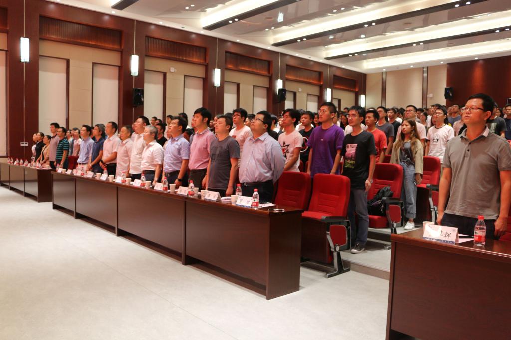 本科生开学典礼结束后,研究生新生开学典礼于16:00正式开始。全体起立奏唱国歌后,新生代表硕1807班的董蛟龙和老生代表博士生1806班的周游先后登台发言。