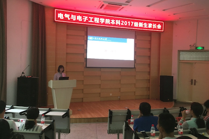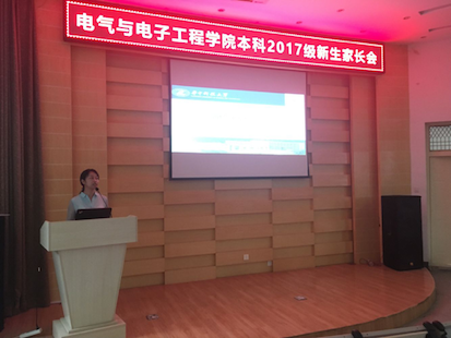 9月2日下午三点,学院在西九楼502报告厅召开“电气与电子工程学院本科2017级新生家长会”,学院党委书记陈晋、副院长李红斌、党委副书记罗珺、17级辅导员萧珺及其他各年级辅导员到会,会议由萧珺主持。