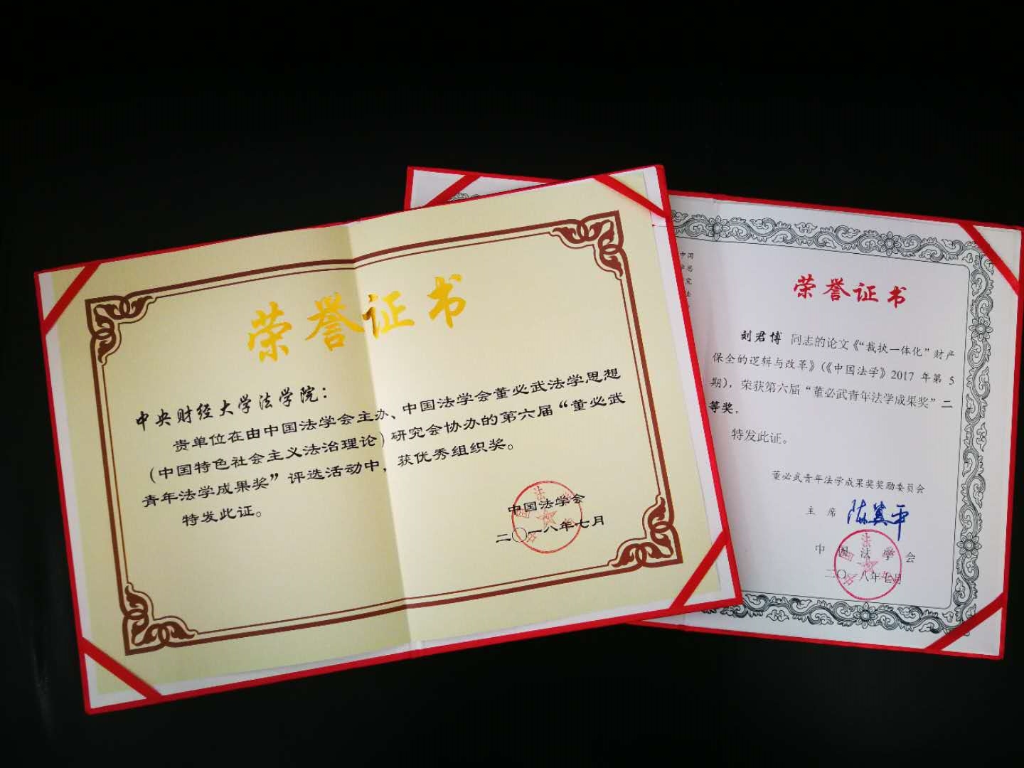 此前,中央财经大学法学院尹飞、邢会强、林剑锋、于文豪等优秀青年学者曾在第二至第五届“董必武青年法学成果奖”评选活动中获奖。