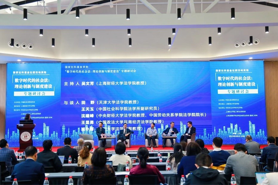 2023年4月22日至23日,由国家社科基金资助的“数字时代的社会法:理论创新与制度建设”专题研讨会在上海财经大学举办。本次会议由中国社会法学研究会主办,上海财经大学法学院承办,华东政法大学经济法学院、上海政法学院上海司法研究所、上海法院数字经济司法研究及实践(嘉定)基地协办,中国法学会副会长、秘书长,中国社会法学研究会会长张鸣起发表视频讲话,来自全国各高校、科研机构以及实务部门的150余名学者参加会议。我院沈建峰教授受邀参会并参与研讨。