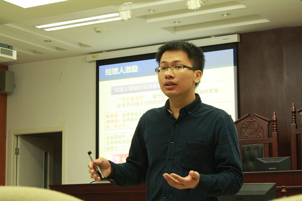 2014年5月14日晚,由我院主办的跨学科论坛系列讲座之二十四讲在中财大厦模拟法庭顺利举行。本次论坛由会计学院陈运森副教授主讲,主题为“合约、代理人问题与经理人激励”。法学院研会学术部副部长柴瑞泽同学主持了本次讲座,法学院和会计学院学生等积极参与了本次讲座。