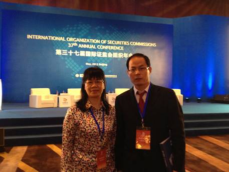 曾筱清与邢会强在第37届国际证监会组织年会上合影留念