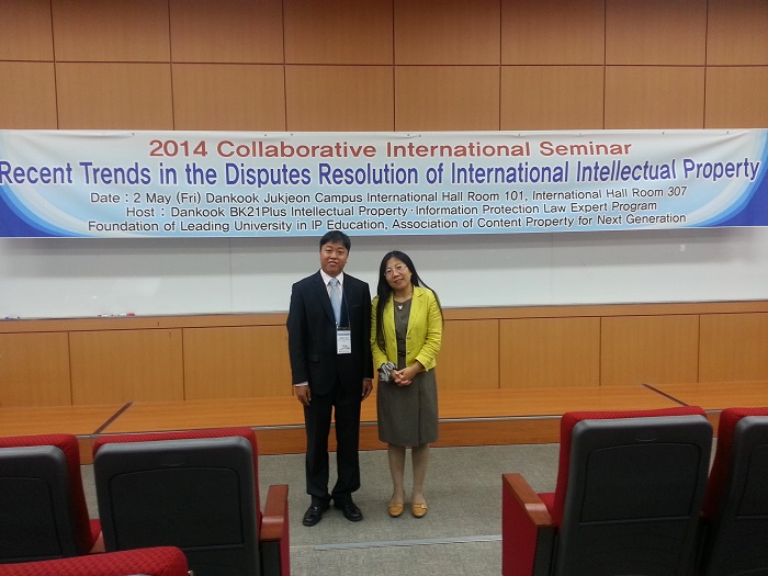 2014年5月2日,由韩国檀国大学BK21 Plus知识产权信息保护法特化专业人才培养事业团与檀国大学法学院与共同主办的“国际知识产权争议解决的趋势”学术研讨会在韩国首尔召开。来自中国、韩国、德国和日本的学者和实务专家参加了本次研讨会。我院杜颖教授和董新义博士受邀参加本次研讨会并做了学术交流,并和檀国大学法学院院长进行了亲切交流。