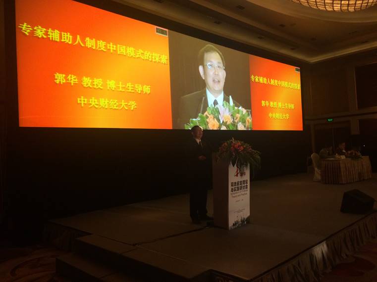 郭华教授的报告主题是“专家辅助人制度中国模式的探索”。报告针对我国法律确立专家辅助人制度的原因、需要构建何种专家辅助人制度以及完善我国专家辅助人制度需要进一步思考的问题进行阐述,并对进一步完善我国专家辅助人制度以及如何树立中国模式的制度自信提出了自己的看法。