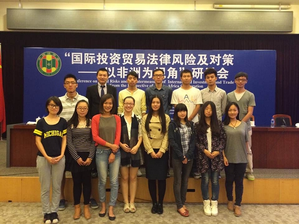 2014年9月18日,法学院教师沈健博士带领我院12级法学本科应用复合班、涉外班的部分学生参加“国际投资贸易法律风险及对策——以非洲为视角”国际研讨会。此次研讨会由中国法学会与外交部主办,参会的除我国著名学者、资深涉外法律工作者外,还有来自非洲9个国家的20名司法界官员。此次研讨会从中、非不同的视角对涉非投资贸易的法律风险及对策进行了深入的研讨交流。