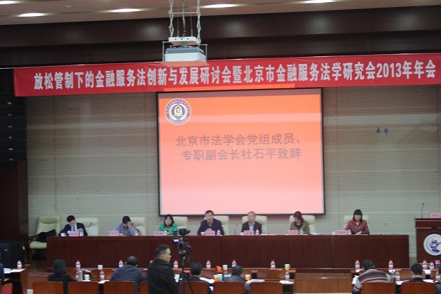 在放松管制、加强监管和保障金融市场安全高效运行和整体稳定的背景下,为党的十八届三中全会关于金融改革与发展献计献策,为金融改革的法治保障提供智力支持,促进我国金融服务法的进一步发展,2013年12月28日,由北京市金融服务法学研究会、中央财经大学金融服务法研究中心主办,中央财经大学法学院承办的放松管制背景下的金融服务法创新与发展暨北京市金融服务法学研究会2013年年会在中央财经大学学术会堂202室举行。本次研讨会主题为放松管制背景下的金融服务法创新与发展,下设完善金融市场体系与金融法治创新、民间金融发展的制度环境与法治保障和金融服务法体系的构建三个专题。