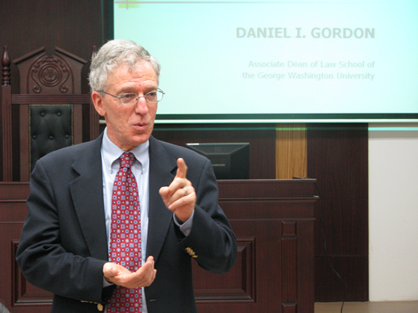 5月7日16:00,由中央财经大学中国公共采购研究所、法学院、财政学院共同主办,并由中央财经大学法学院研究生会承办的“奥巴马时代美国政府采购政策反思”讲座在中财大厦二层模拟法庭如期举行。本次讲座邀请到了美国乔治华盛顿大学法学院副院长丹尼尔·戈登教授作为主讲人,中央财经大学法学院教授、博士生导师、科研实验区中国公共采购研究所所长曹富国教授担任主持。