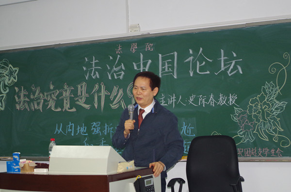 2014年11月25日晚,由我院研究生会和学生会共同承办的法治中国论坛系列讲座之第二讲于沙河校区西区303室成功举办。本场讲座特别邀请到了中国人民大学教授、博士生导师史际春先生作为主讲人,为大家主讲《法治究竟是什么——从内地强拆遭遇尴尬和香港闹“占中”谈起》。讲座由副院长高秦伟教授主持,李伟副教授和于文豪博士也出席了本次讲座。