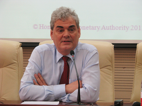 2012年5月11日下午14:00,香港金融管理局首席法律顾问及执行总裁Stefan Gannon(简贤亮)先生应中央财经大学法学院邀请,来我校做题为“中央银行的市场干预——良好治理的政策/法律视角”的专题演讲。讲座在学术会堂202报告厅举行,法学院副院长吴韬副教授、曾筱清教授、米德夫教授、邢会强副教授、陈飞副教授等出席了本次讲座。