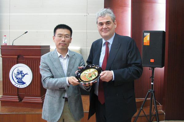 吴韬副院长向简贤亮先生赠送我院纪念品