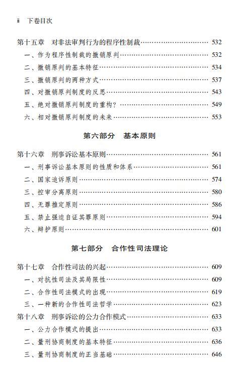 该书对刑事诉讼法学的范畴和体系、诉讼价值理论、诉讼构造理论、诉讼形态理论、程序性制裁理论、刑事诉讼基本原则、合作性司法理论、辩护理论作出了全面而深入的讨论。该书的基本特点有三:
