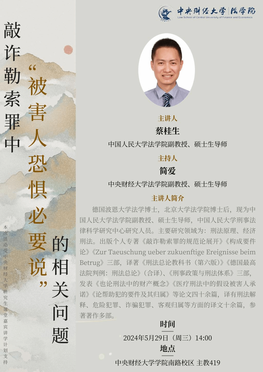 主讲人:蔡桂生(中国人民大学法学院副教授、硕士生导师)