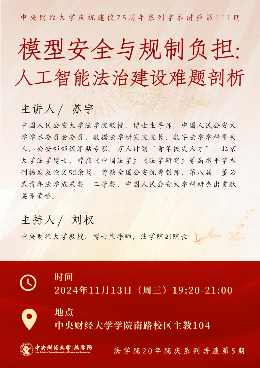 • 讲座|11.13|苏宇:模型安全与规制负担:人工智能法治建设难题剖析
