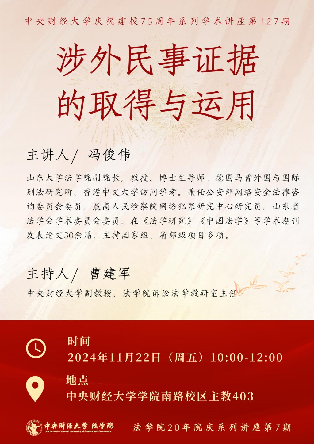 • 讲座|11.22|冯俊伟:涉外民事证据的取得与运用