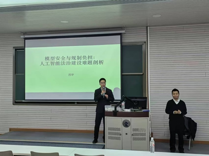 在讲授过程中,苏宇教授辅以大量算法技术相关的事例及自身实践,为大家做了生动有趣的讲解。除了剖析由算法解释转向算法测评的原因,苏宇教授还从模型安全治理的角度,普及了多种常见的算法风险及防护技术,并详细介绍了每种防护技术自身的局限性。由此,苏宇教授提出的一个关键问题是人工智能立法在无法追求绝对安全的情况下,应当如何把握合理的“安全水位”,并且如何根据现行规范对象探索一套可靠的测评基准予以回应。