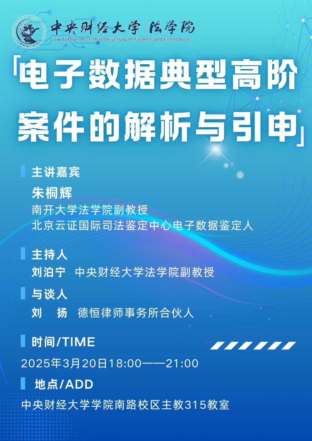 • 讲座|3.20|朱桐辉:电子数据典型高阶案件的解析与引申