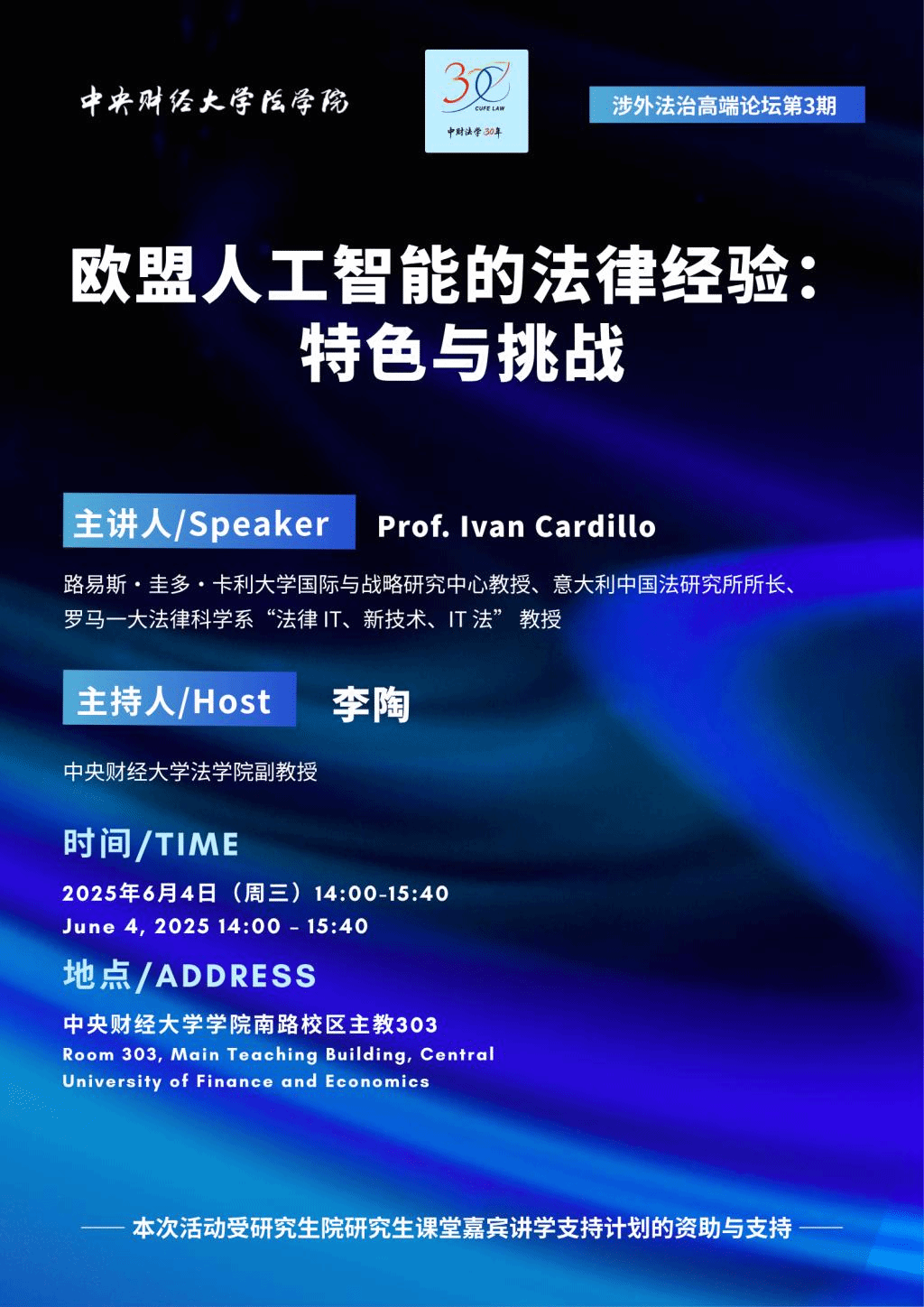 主讲人:Prof. Ivan Cardillo,路易斯·圭多·卡利大学国际与战略研究中心教授、意大利中国法研究所所长、罗马一大法律科学系“法律 IT、新技术、IT 法” 教授