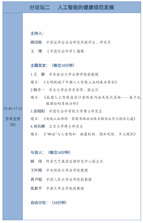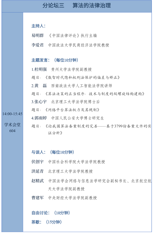 第三届“数字法治青年论坛”分论坛议程