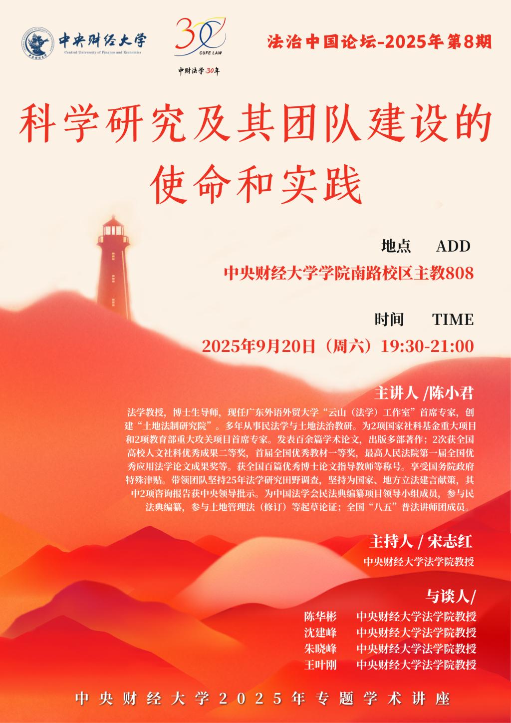 地 点:中央财经大学学院南路校区主教808