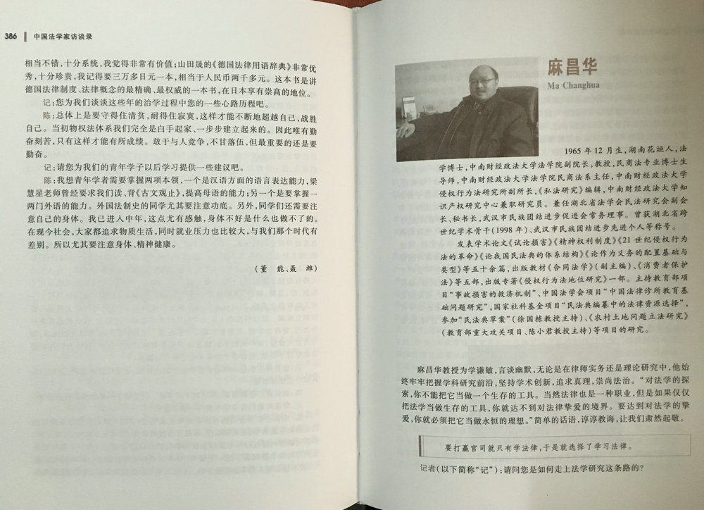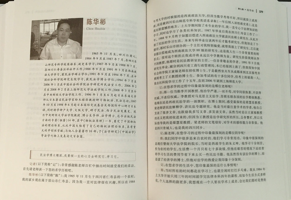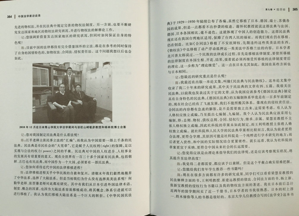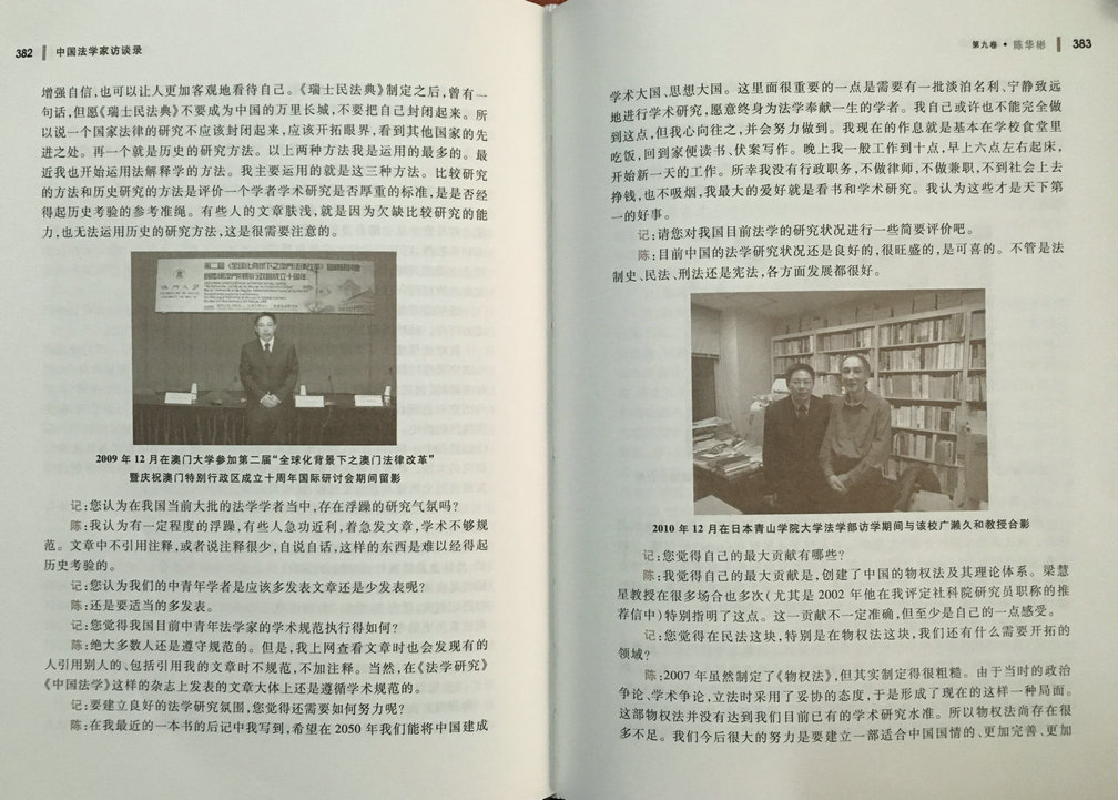 日前,由华东政法大学原校长、我国著名法制史研究专家何勤华教授主编、北京大学出版社出版的《中国法学家访谈录》出版。中央财经大学法学院民法学科带头人、《财经法学》主编、博士生导师陈华彬教授收录其中。