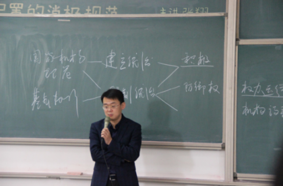 2017年12月6日上午,我院在沙河东区主教218举办了“宪法文化宣传周——基本权利作为国家权力配置的消极规范”主题讲座。主讲人为刚刚入选“十大杰出青年法学家”的中国人民大学法学院副院长张翔教授。我院白斌副教授、赵真副教授、刘权副教授出席讲座。