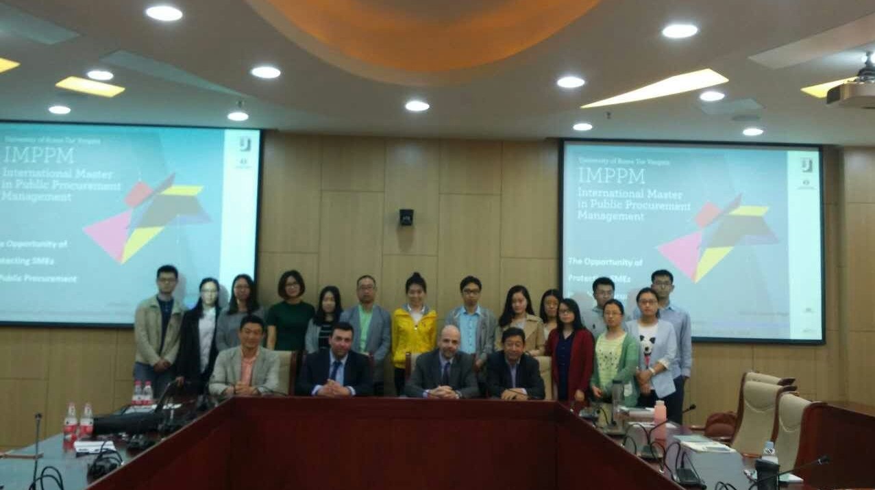 在专题讲座中,皮加教授首先介绍了欧共体正在推行的促进公共采购专业化发展的政策,这项政策包括职业化计划、促进培训计划、能力建设和交流实践等。该政策倾向于,市场情报、业务技能和关注技能必须成为公共采购的核心,即公共采购需要成为业务技能,而不是一个腐败低效的行政口号。接着,皮加教授介绍了罗马第二大学IMPPM(国际公共采购管理硕士)交流项目,并欢迎在座的同学参加此项目。