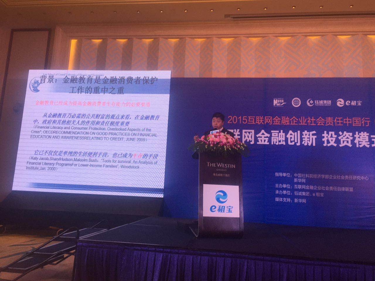 2015年11月12日和17日,中央财经大学法学院董新义副教授应邀参加“2015年互联网金融企业社会责任中国行”烟台站和青岛站活动,为两城市的1000余名投资者作了金融消费者权益保护方面的演讲,受到两城市投资者的好评。