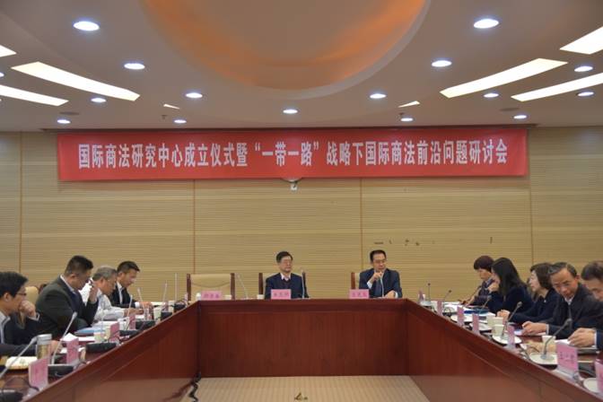 2016年12月18日,我校法学院与中国国际经济贸易法学研究会共同主办的“国际商法研究中心成立仪式暨‘一带一路’倡议下国际商法前沿问题研讨会”在我校学术会堂604室成功举行。