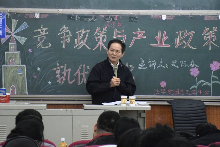 2016年12月10日晚,中国经济法学研究会副会长、《法学家》主编、中国人民大学史际春教授受邀莅临沙河校区做客“法治中国论坛”,主讲“竞争政策与产业政策:究竟孰优孰劣?”。史际春教授是我国著名经济法学家,1998年中共中央法制讲座课题组组长,2005年中央政治局法制讲座主讲人,兼任北京市人大常委会委员及法制委员会委员、北京市人民政府顾问等职。本场讲座由院党委书记吴韬副教授主持,出席讲座的有邢会强教授、郑人玮副教授、副院长李伟副教授、院长助理于文豪副教授、刘权博士、王毅纯博士以及沙河校区的部分研究生及本科生参加了本次讲座。