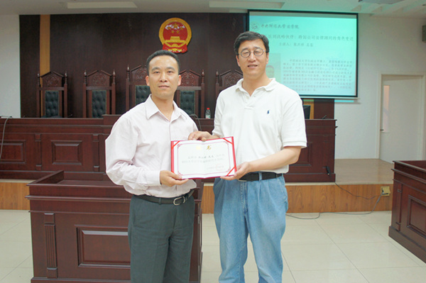 2012年6月4日晚6:30,GE金融(中国)派驻英大汇通融资租赁有限公司法务合规总监张兴祥博士在二层中财大厦模拟法庭为我院师生作了题为“从法律工匠到战略伙伴:跨国公司法律顾问的角色变迁”的学术讲座。讲座由中央财经大学法学院教授高秦伟主持,法学院副院长刘双舟教授、肖芳博士出席了本次讲座。
